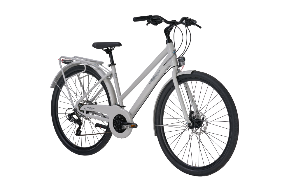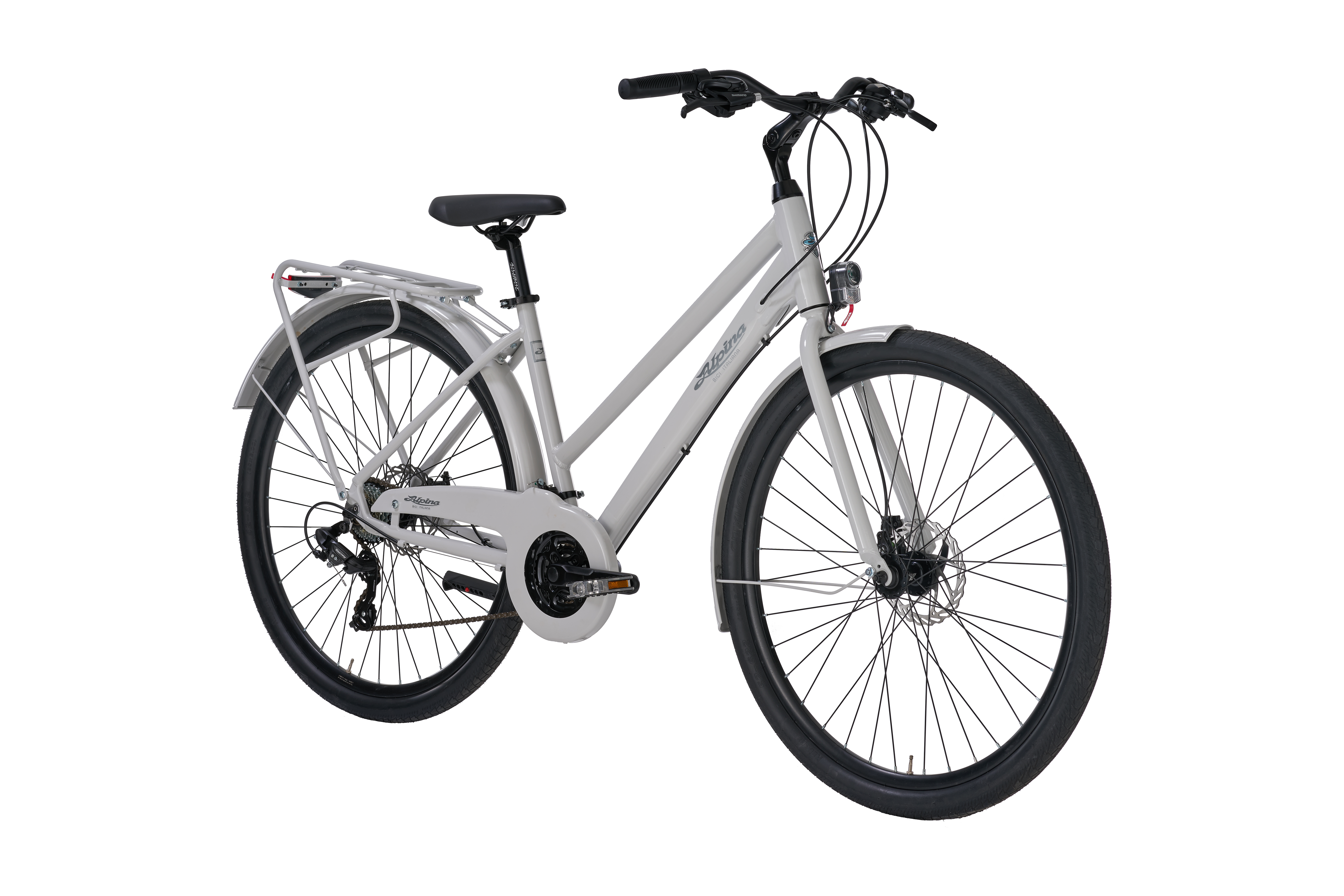 Bicicleta Alpina Comfort 28 Lady es una bicicleta urbana, pensada para desplazamientos diarios con una posición cómoda y relajada. Cuadro de aluminio, ligera y manejable, manteniendo un diseño clásico.