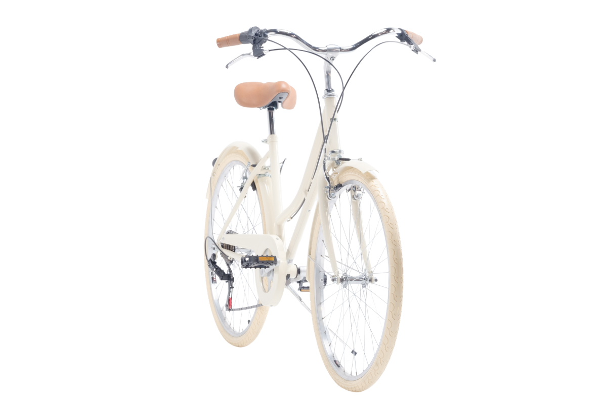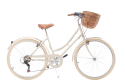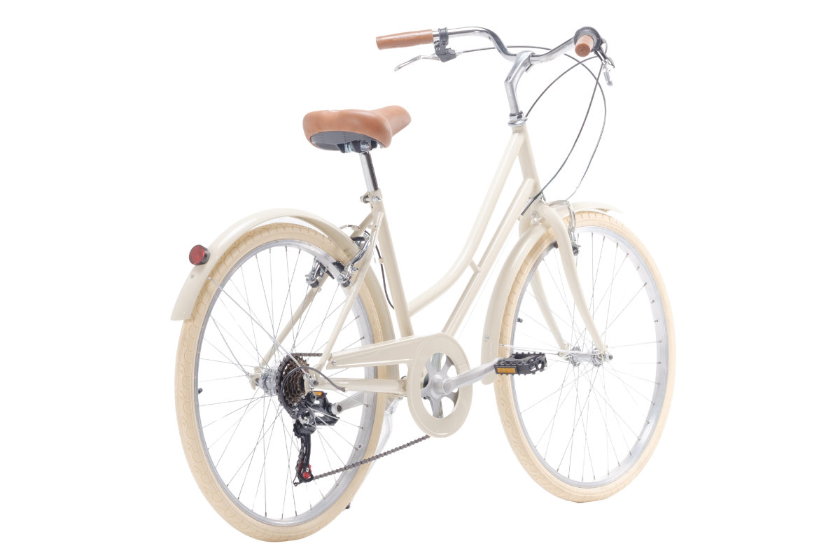 Descubre la elegante bici urbana Capri Bikes Valentina Cream: diseño clásico con ruedas de 26″, cuadro de acero de 46 cm (ideal para alturas 1,50 – 1,70 m) y tan solo 15,2 kg de peso. Equipada con transmisión de 6 velocidades Shimano para afrontar la ciudad o caminos mixtos. Sofisticación vintage y funcionalidad moderna en un solo modelo.