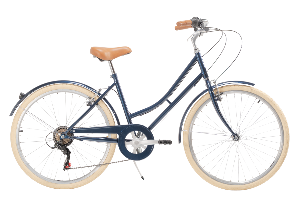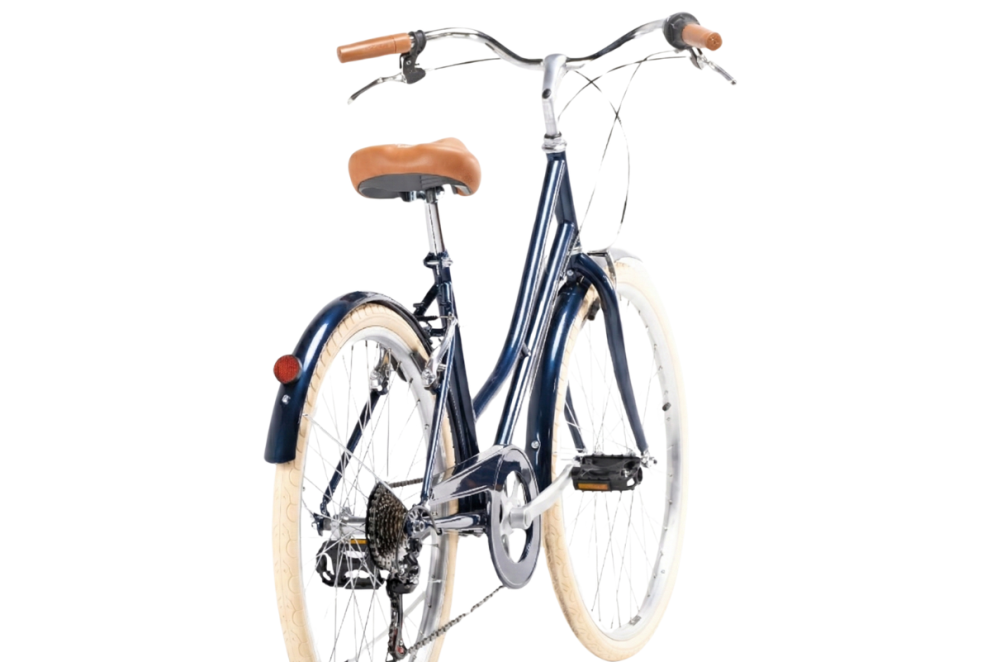 Bicicleta Urbana fabrica por Capri Bikes, Valentina Space Blue: diseño clásico con ruedas de 26″, cuadro de acero de 46 cm (ideal para alturas 1,50 – 1,70 m) y tan solo 15,2 kg de peso. Equipada con transmisión de 6 velocidades Shimano para afrontar la ciudad o caminos mixtos. Sofisticación vintage y funcionalidad moderna en un solo modelo