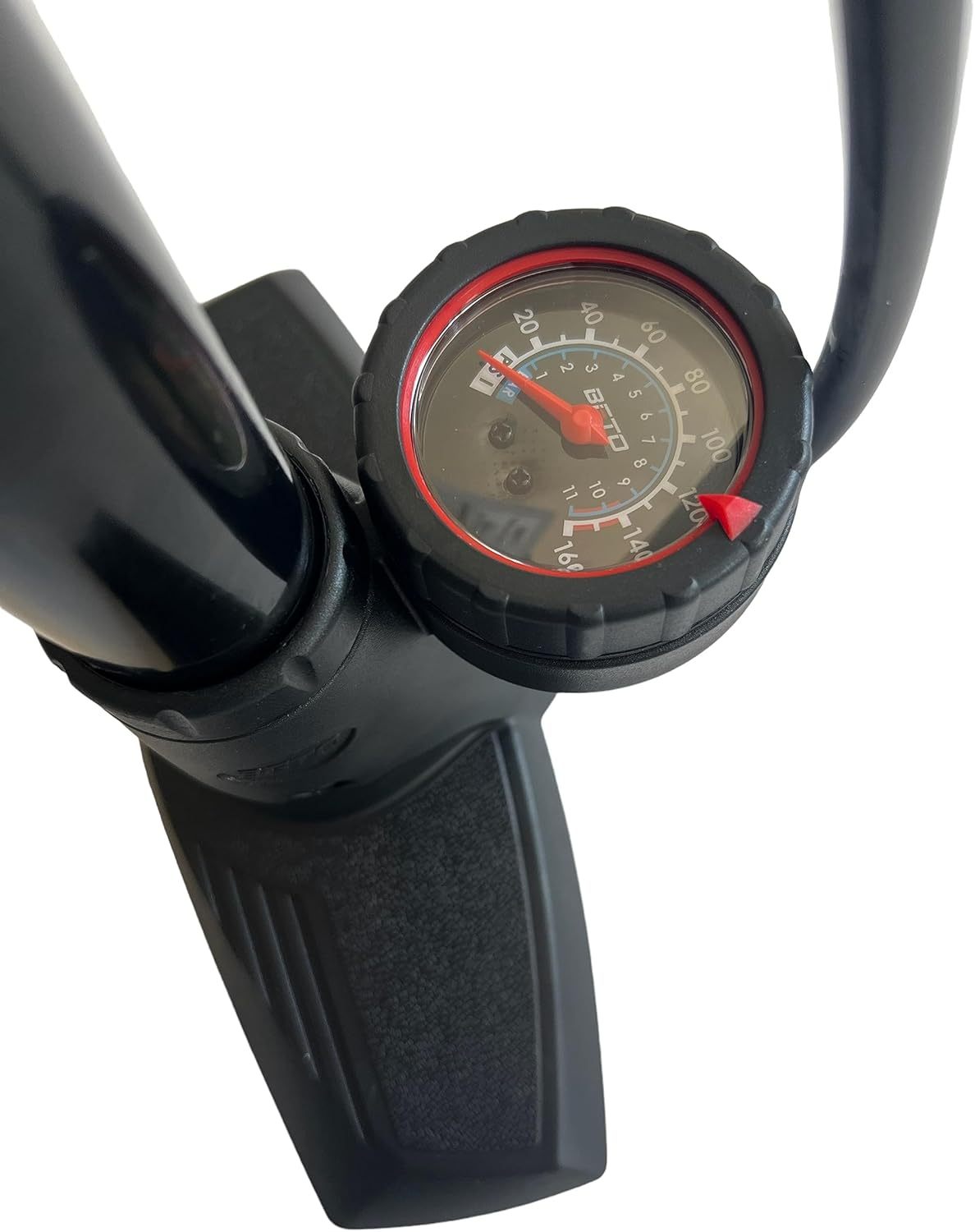 Bomba de pie metálica Beto con manómetro. Perfecta para hinchar las ruedas de tu bicicleta de forma cómoda y sencilla.