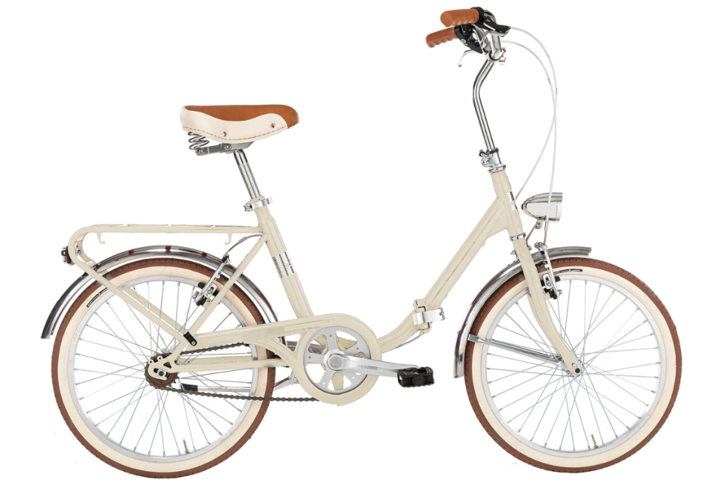 Komponenten: V-Brake-Bremsen aus Aluminium, 20-Zoll-Felgen und ein bequemer zweifarbiger Vintage-Sattel.