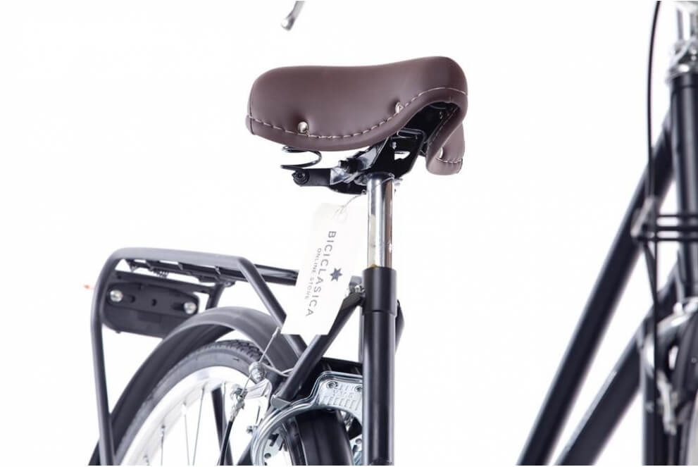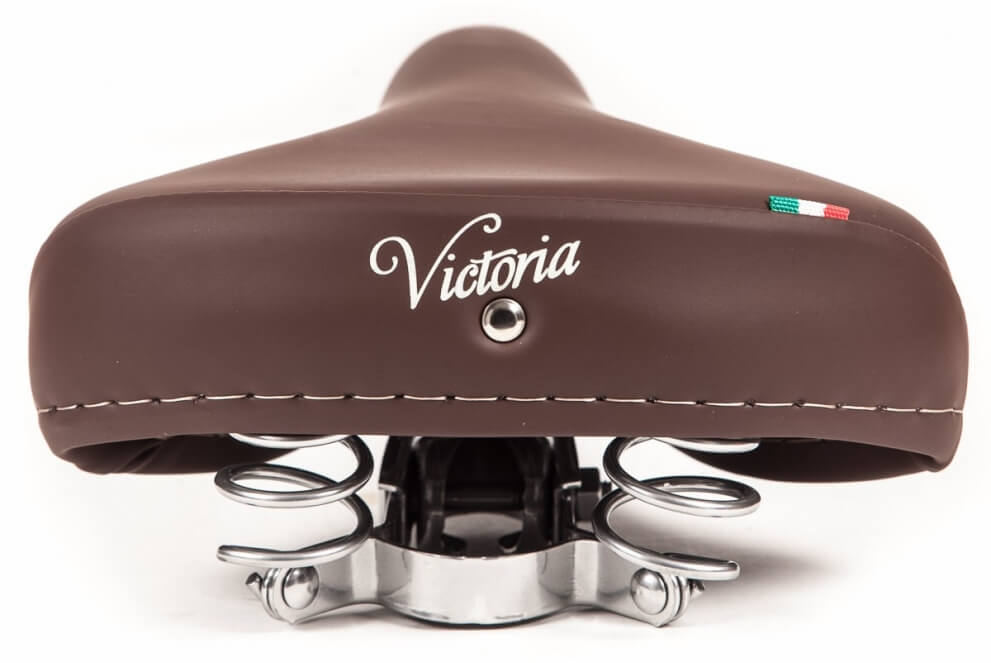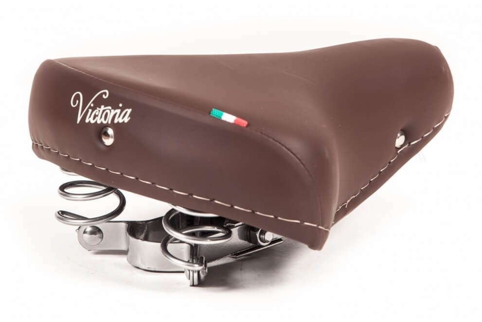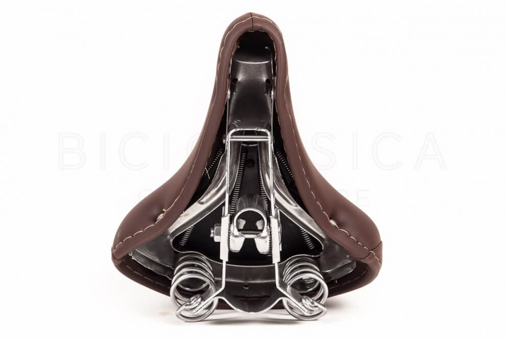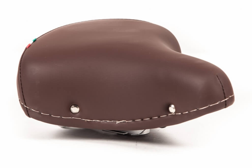 Komfortabler und widerstandsfähiger Sattel für Tourenräder, in brauner Farbe, hergestellt in Italien.