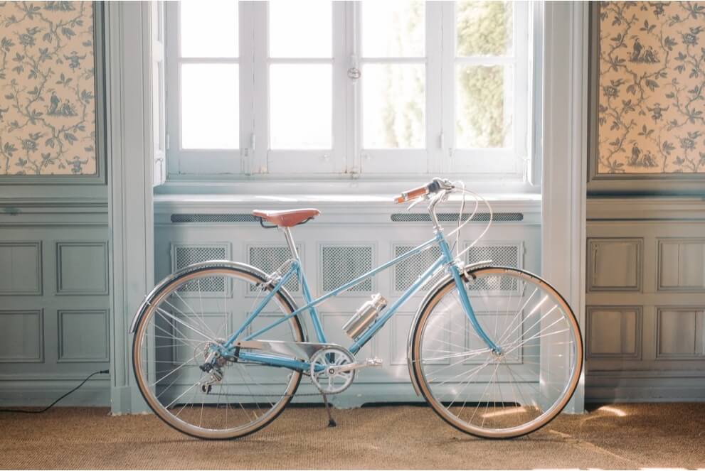 Retro-Stil Capri Elektrofahrrad mit einem Akku in Form einer Gießkanne, 250 W verstecktem Motor und alles in 16 kg.