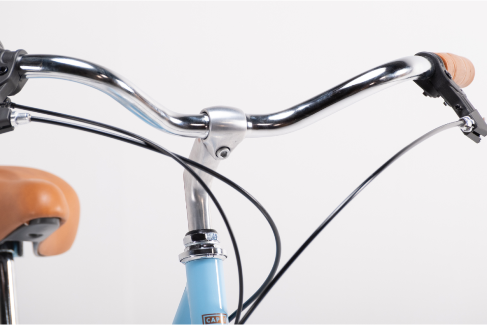 Vélo urbain fabriqué par Capri Bikes. Ce vélo est idéal pour la ville et les usages mixtes. Taille de la roue 26 pouces, couleur bleue.