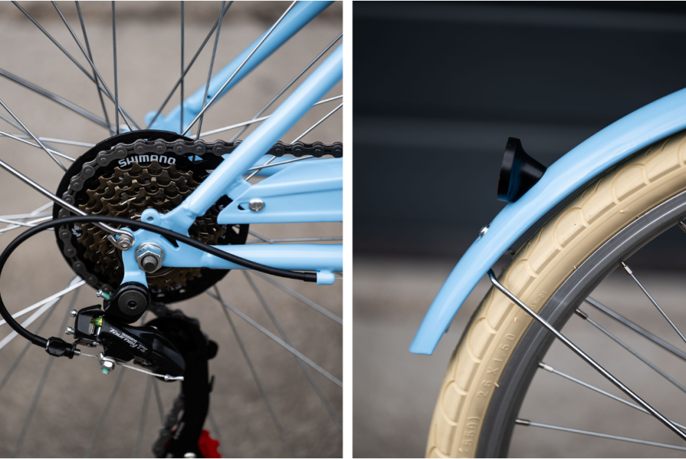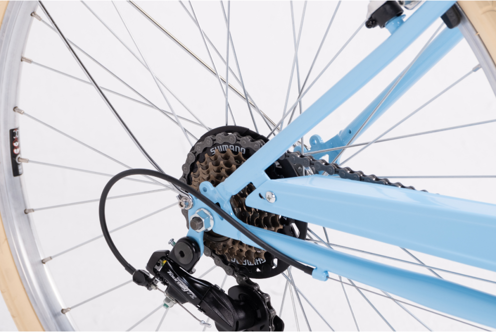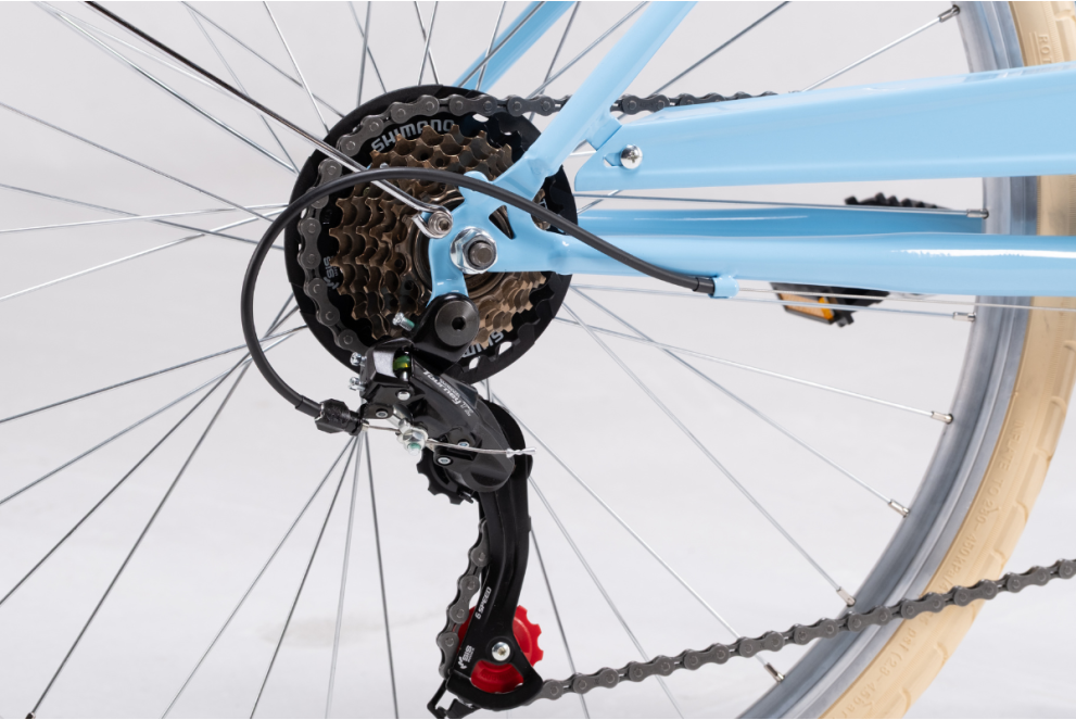 Équipé d'un dérailleur Shimano à 6 vitesses, il peut affronter n'importe quelle ville ou n'importe quel environnement.