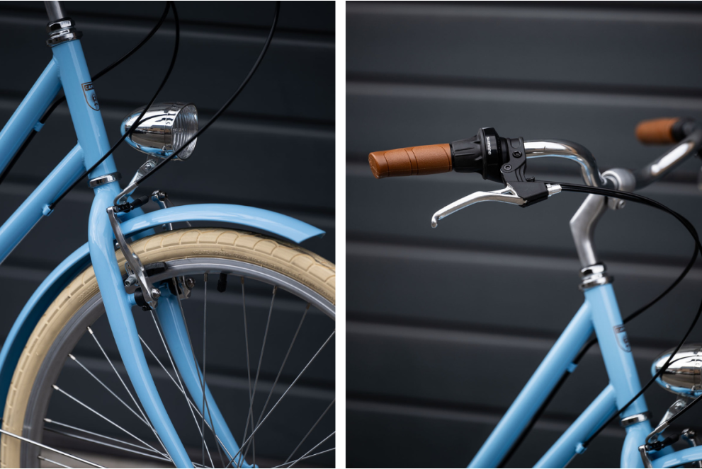 Équipé de composants utiles et de qualité nécessaires à l'utilisation quotidienne du vélo : béquille, dérailleur, garde-boue et protège-chaîne.
